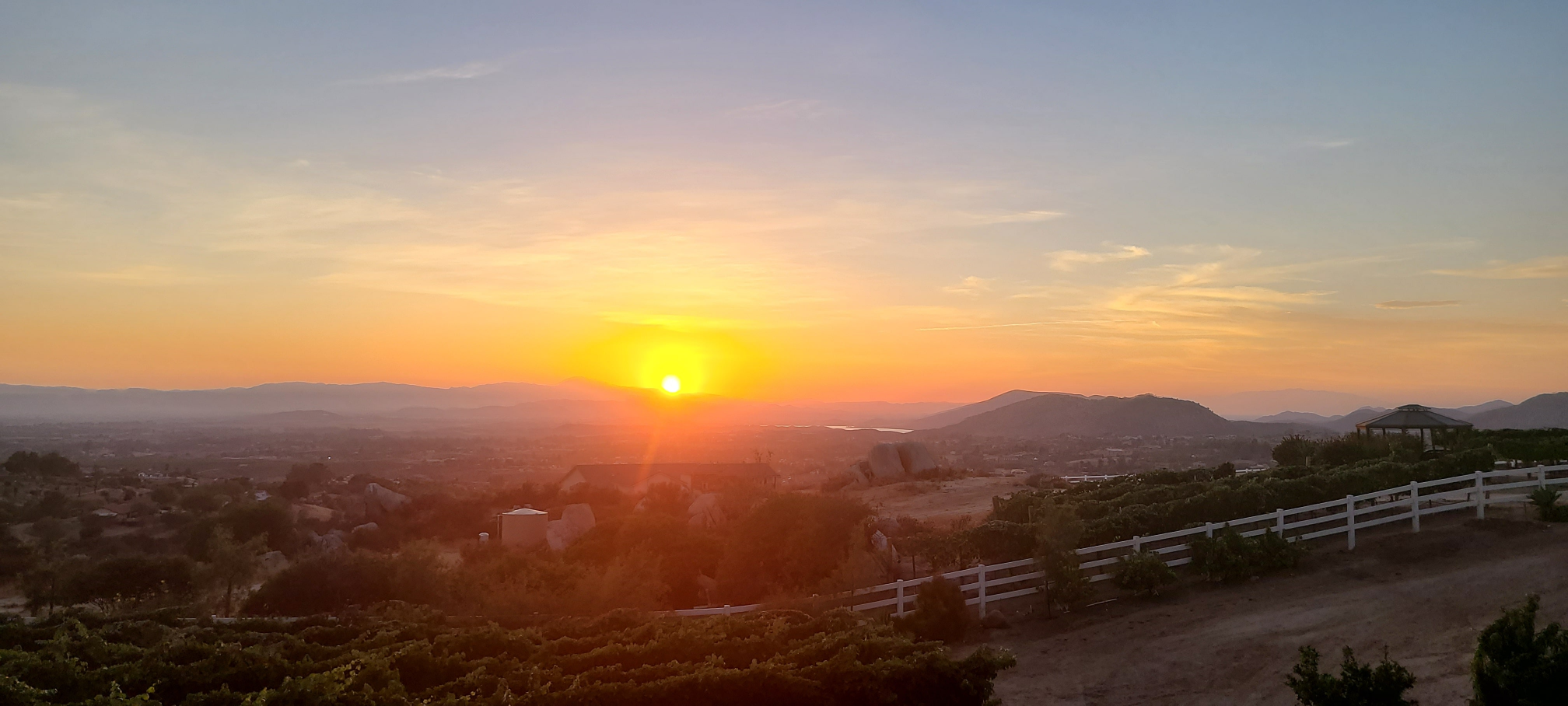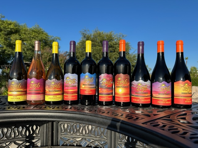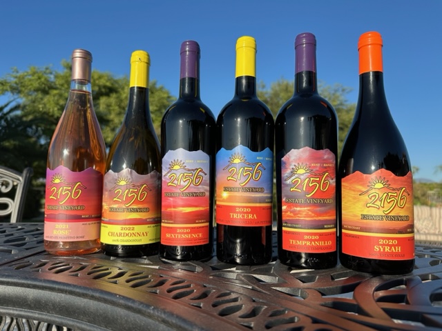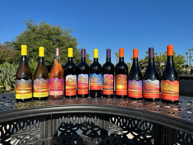“Our mountain top estate vineyard lies at 2,156 ft. Nearly double the elevation of the Temecula Valley floor. Our cooler temperatures and smaller daily fluctuations are beneficial to protecting the grapes natural acidity. Combined with the Temecula breezes, the result is gradual steady ripening of our carefully chosen and meticulously cared for varietals. Our goal is to make powerful yet elegant wines – silky and full-bodied with balanced subtle aromatics. Most importantly remember that with 2156 Estate Wines – There’s Always a Sunset!”